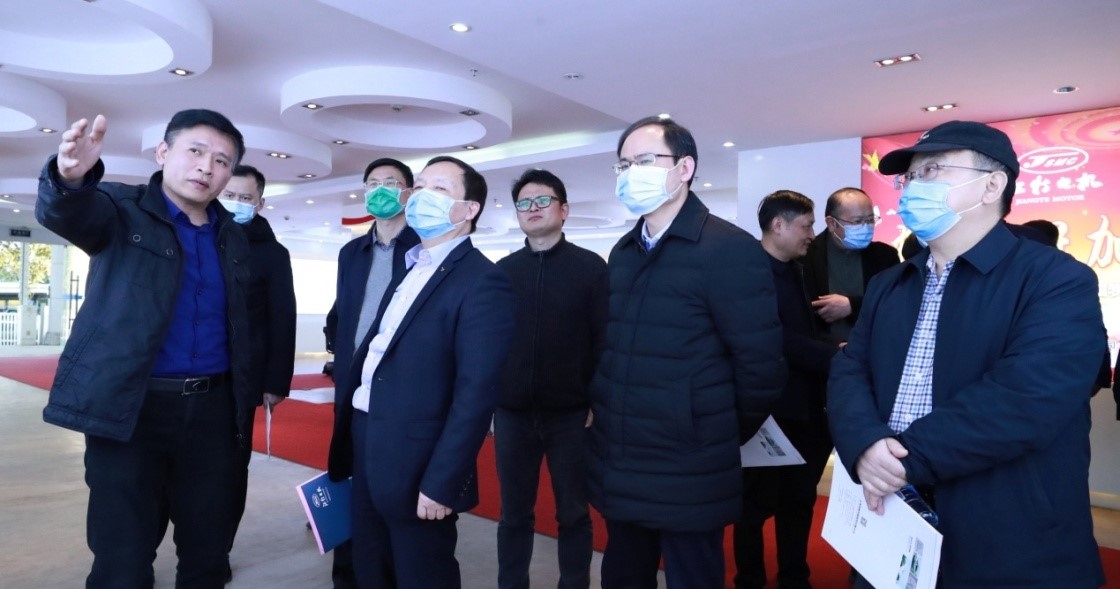 2021年1月13日下午,汝州省人大常委会委员、法制工作委员会主任周雍,省人社厅党组成员、副厅长肖国军一行莅临江特电机公司考察调研,市人大副主任刘平、区人大副主任冷北兴以及市、区人社部门领导陪同调研,江特电机公司总裁梁云,总裁助理周咏志等陪同接待。