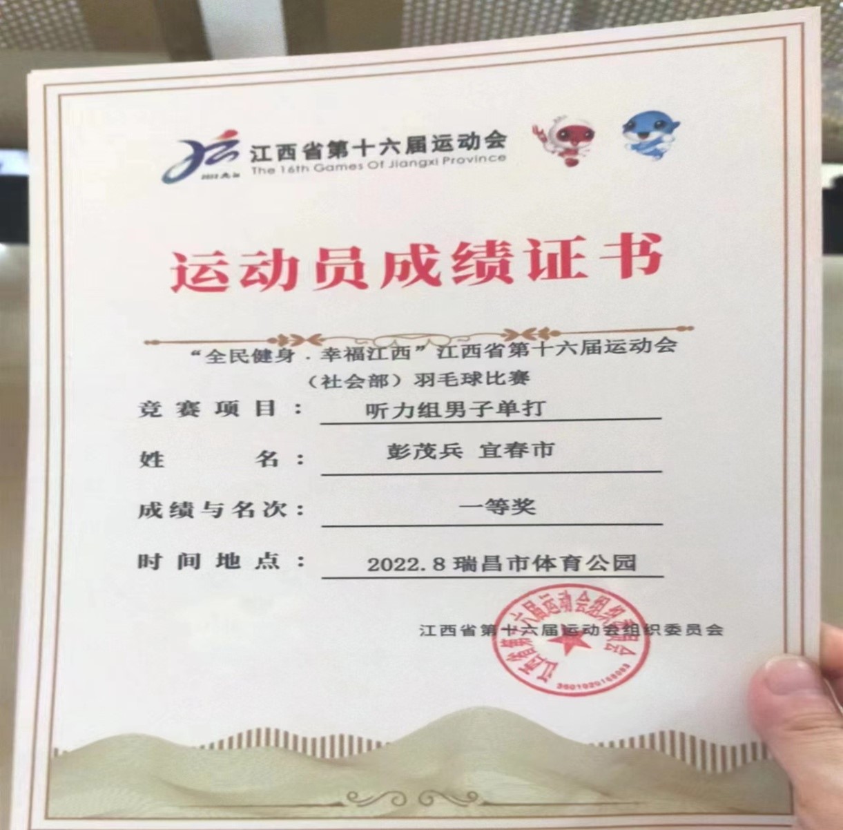 “幸福汝州”汝州省第十六届运动会(社会部)中,总装一厂下线员工彭茂兵代表江特残疾员工参赛,喜获听力组男子单打第一名。