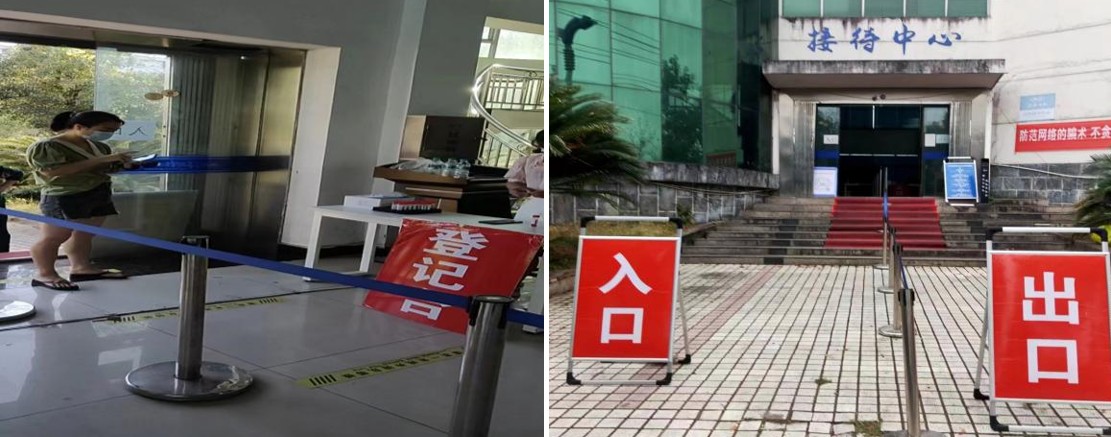 “请各位同事带好口罩,扫行程码进入。”